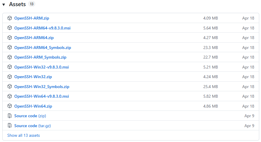 1.Gitからダウンロードします https://github.com/PowerShell/Win32-OpenSSH/releases